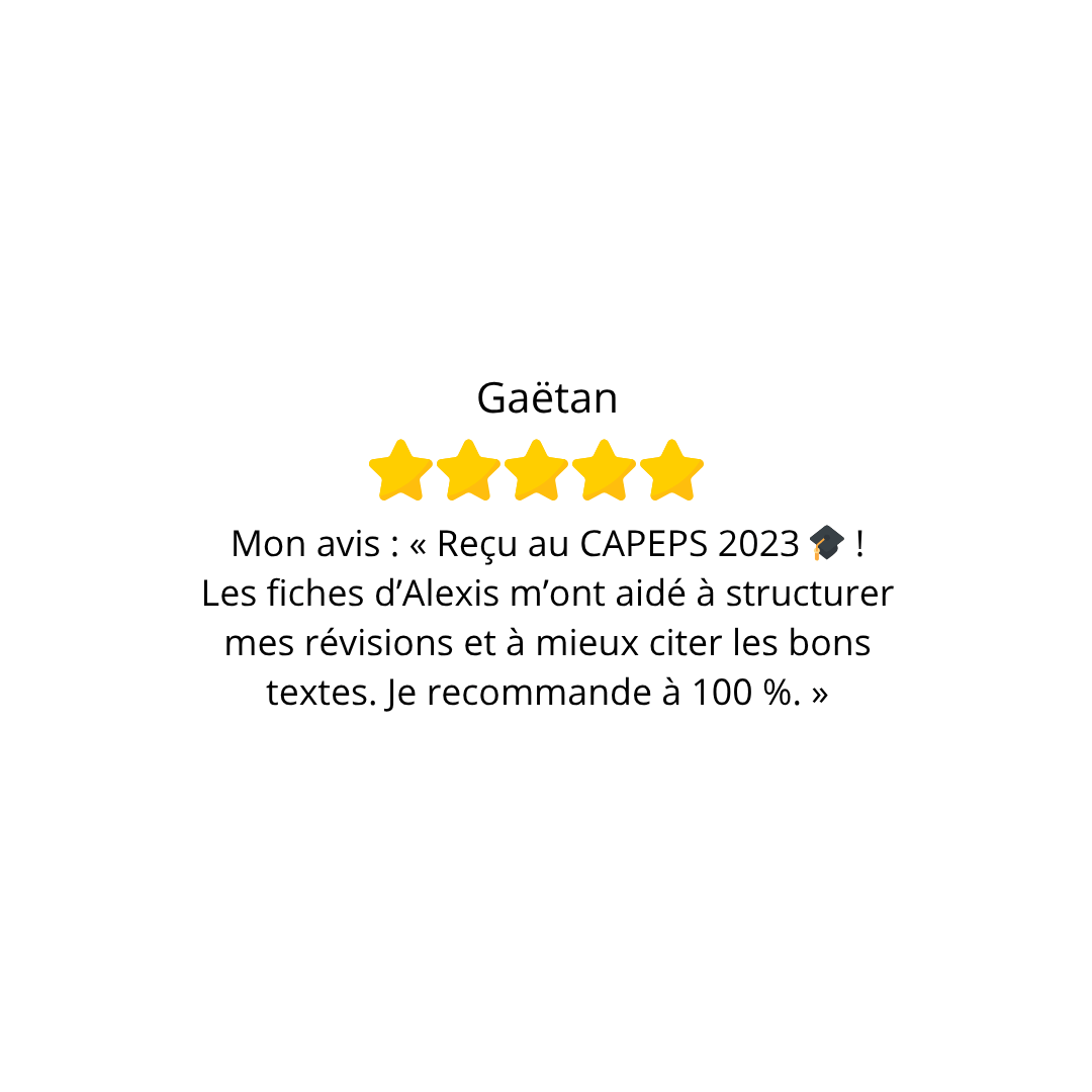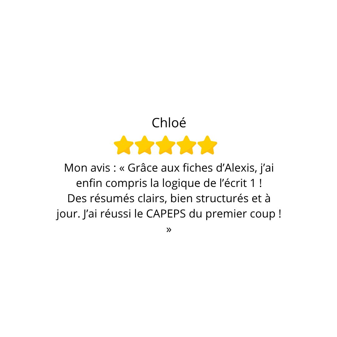 Je m’appelle Alexis, professeur d’EPS, j’ai réussi le CAPEPS dès ma première année, parmi les 100 premiers au classement. Aujourd’hui, je partage mes fiches pour vous aider à faire de même.