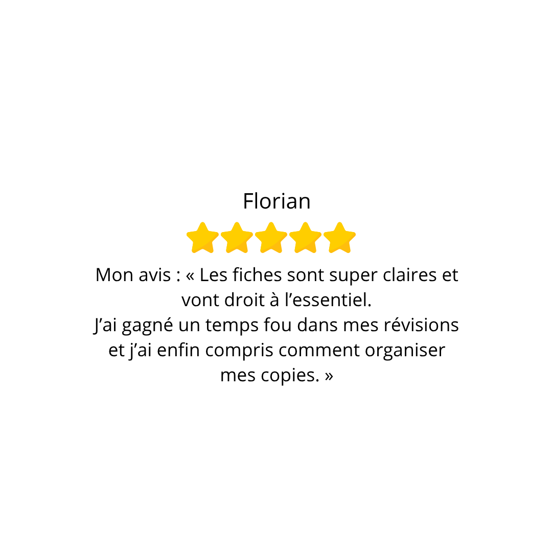 Chaque fiche est issue de mon expérience personnelle et de ma réussite au concours, avec une méthodologie claire et concrète.